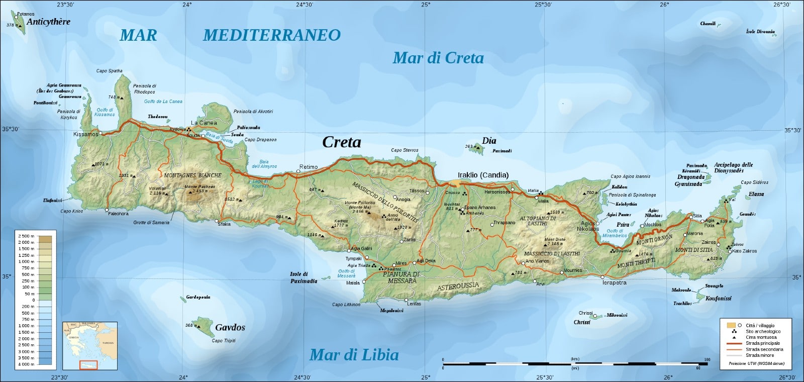 Creta es la mayor de las islas griegas y la más meridional de Europa. Creta es el hogar de la mitología: cuenta la leyenda que Zeus nació en la isla y que uno de sus hijos, Minos, el rey minoico del espléndido palacio de Cnosos, aprisionó al Minotauro en el laberinto.