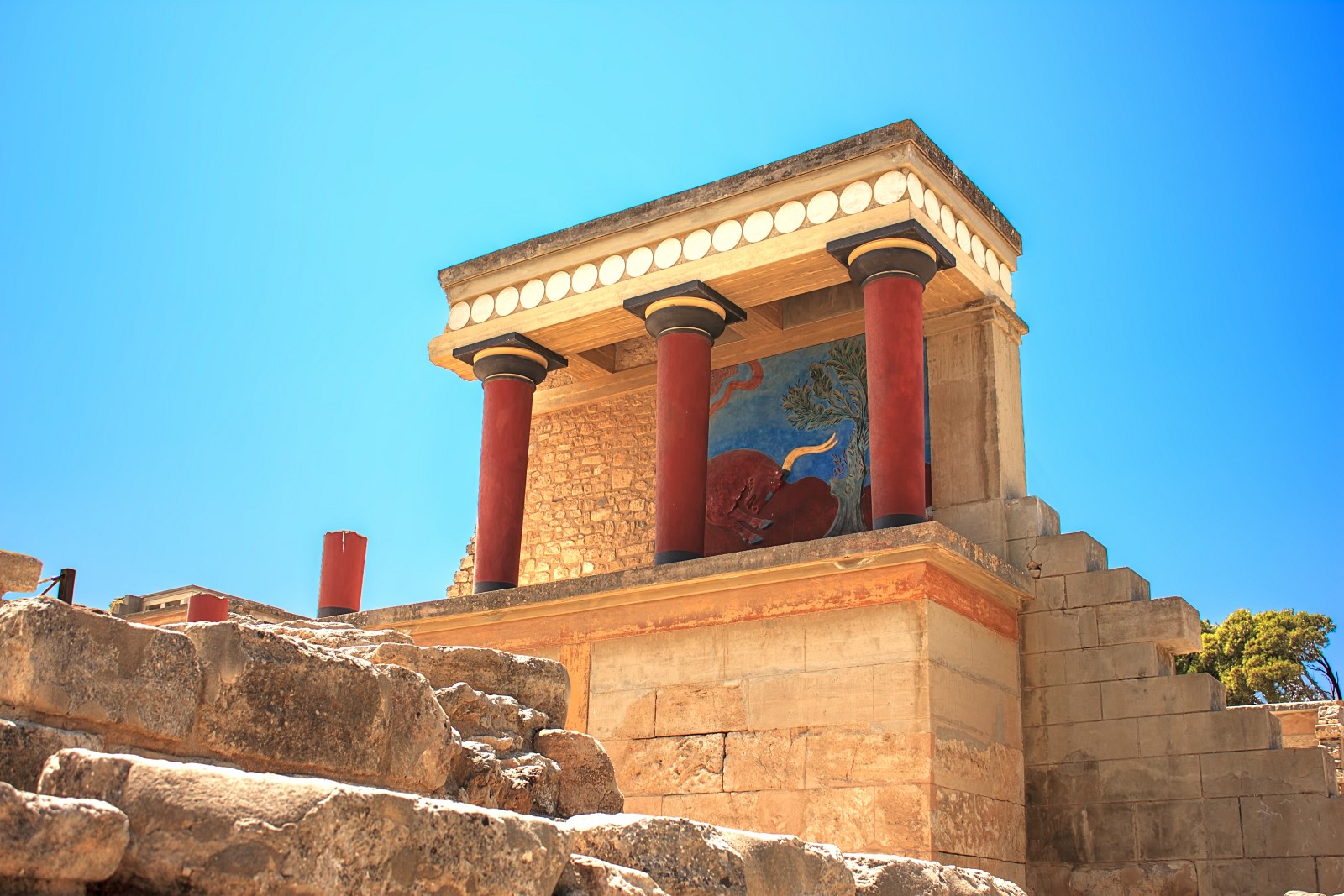 Centro político, económico y religioso, el Palacio de Cnosos (o Knossos) se construyó hacia 1700 a.C. y actualmente se encuentra a unos 6 km del centro de Heraclión, la capital de Creta. Cuna de la civilización minoica, Cnosos era una ciudad que, rodeada por el río Kairatos, ocupaba una posición estratégica en la colina de Kefala, pero no estaba demasiado lejos del mar y del puerto de Heraclión.