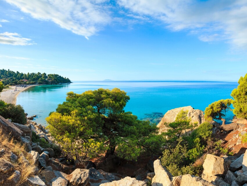 Sitonia representa la cara más auténtica e indómita de Calcídica, una península montañosa que se adentra 50 kilómetros en el mar Egeo conservando su carácter natural. Situada entre la bulliciosa Casandra y la mística República Monástica del Monte Athos, Sitonia ofrece el equilibrio perfecto entre belleza virgen y discretos servicios turísticos. Su escarpada costa alberga algunas de las playas más hermosas de la Grecia continental, donde aguas cristalinas bañan bahías escondidas rodeadas de bosques de pinos que descienden hasta el mar.