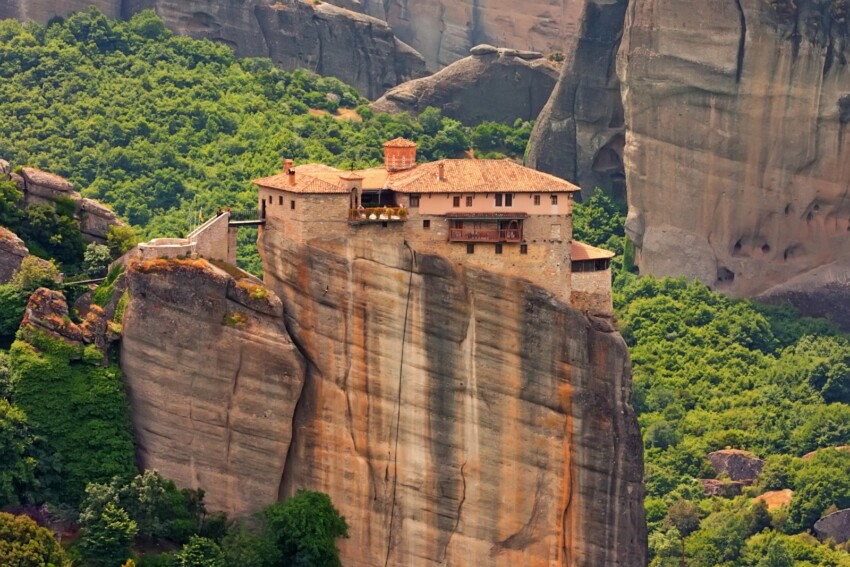 En lo alto de una imponente roca de 613 metros de altura se alza el Gran Monasterio Cristiano Ortodoxo de Meteora, también conocido como Monasterio de la Transfiguración de Jesús: es el mayor y más visitado del complejo.
