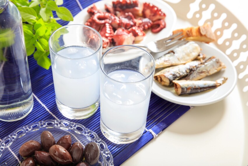 Beber ouzo en Grecia es un auténtico ritual social: se sirve en cafés al aire libre (ouzerie) acompañado de pequeños platos de mezedes para compartir en compañía. La degustación se hace lentamente, siguiendo el ritmo relajado de la conversación.