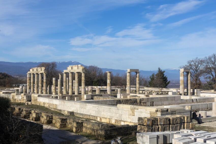 La antigua ciudad de Filipos se encuentra en Macedonia oriental, en el norte de Grecia, a lo largo de la antigua ruta que conectaba Europa con Asia. Conquistada por Filipo II de Macedonia en 356 a.C., la ciudad creció rápidamente y se convirtió en un importante centro minero gracias a las ricas minas de oro de la zona.