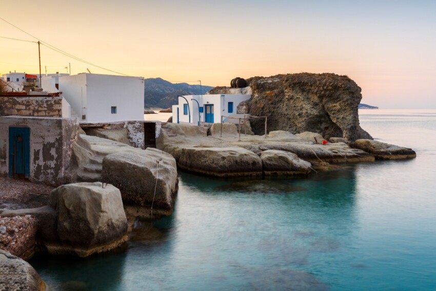La isla toma su nombre de la palabra griega «kimolia», que significa tiza, y no es casualidad: sus casas son, de hecho, más blancas que el blanco, y sus paisajes están dominados por rocas blancas como la nieve que contrastan maravillosamente con el azul profundo del Egeo.