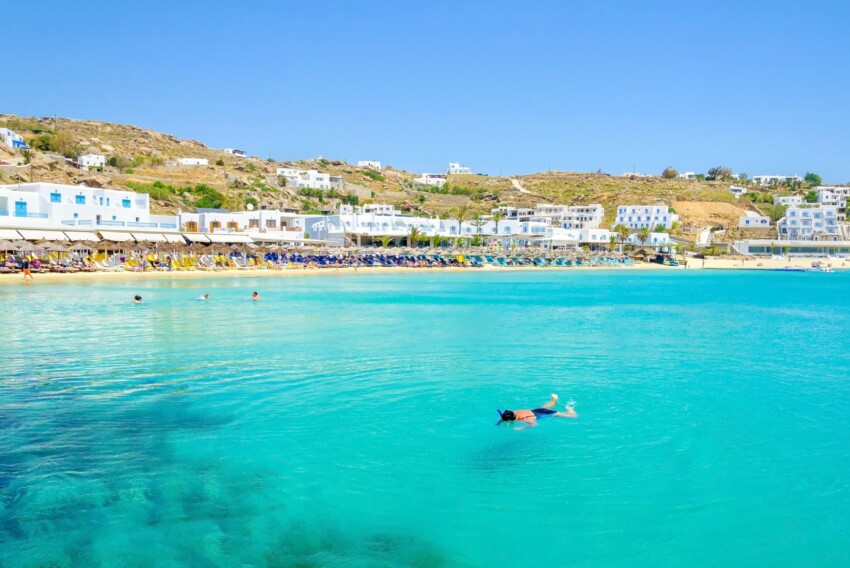 La reputación de Mykonos como un destino para los jóvenes que buscan diversión no hace justicia a las muchas atracciones de la isla, comenzando por sus hermosas playas. Además de las playas de fiesta amadas por la gente de la noche, también hay playas remotas para quienes buscan tranquilidad y playas equipadas ideales para familias con niños pequeños.