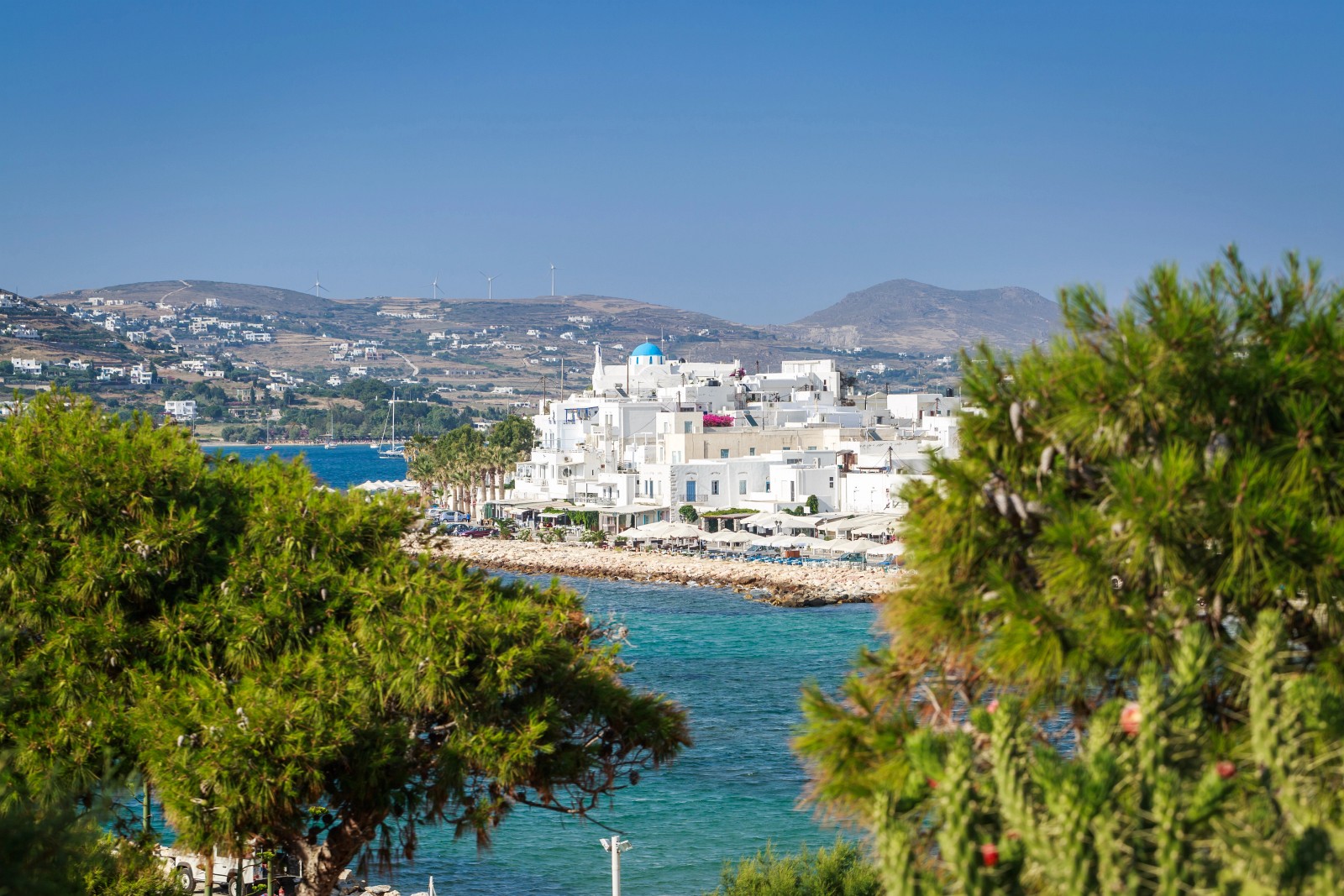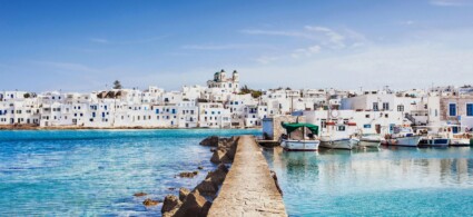 La posición estratégica de Parikia en el lado occidental ofrece espectaculares puestas de sol sobre el mar Egeo, mientras que su puerto naturalmente protegido la convierte en el principal punto de llegada de los transbordadores procedentes de Atenas y las demás islas Cícladas. Desde aquí, las conexiones regulares facilitan el acceso a la vecina Antiparos y a las magníficas playas de Paros.