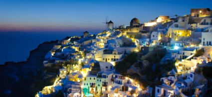 Está situada en el extremo norte de Santorini, desde donde se puede disfrutar de hermosas puestas de sol. La ciudad está definitivamente abarrotada durante la temporada alta, ya que es una parada imprescindible en un viaje a Santorini gracias a sus casas blancas y cúpulas azules, que se han convertido en un símbolo de la isla y de toda Grecia.