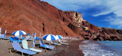Santorini es una isla completa y única, pero si buscas playas impresionantes, probablemente no sea tu destino ideal. Aunque son muy especiales por sus colores, las playas de Santorini son todas rocosas. Si buscas playas «más cómodas», dirígete a la zona de Perissa y Perivolos, donde encontrarás costas arenosas.