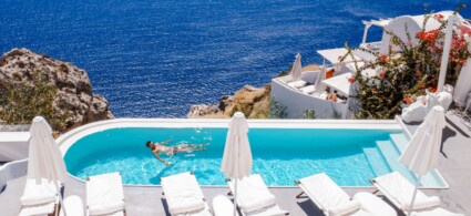 Si hay un destino en el mundo en el que merezca la pena darse el máximo lujo, ése es sin duda Santorini. Aquí, con las increíbles vistas, es fácil pasar la mayor parte del tiempo tomando el sol en una terraza panorámica, relajándose y contemplando la caldera.