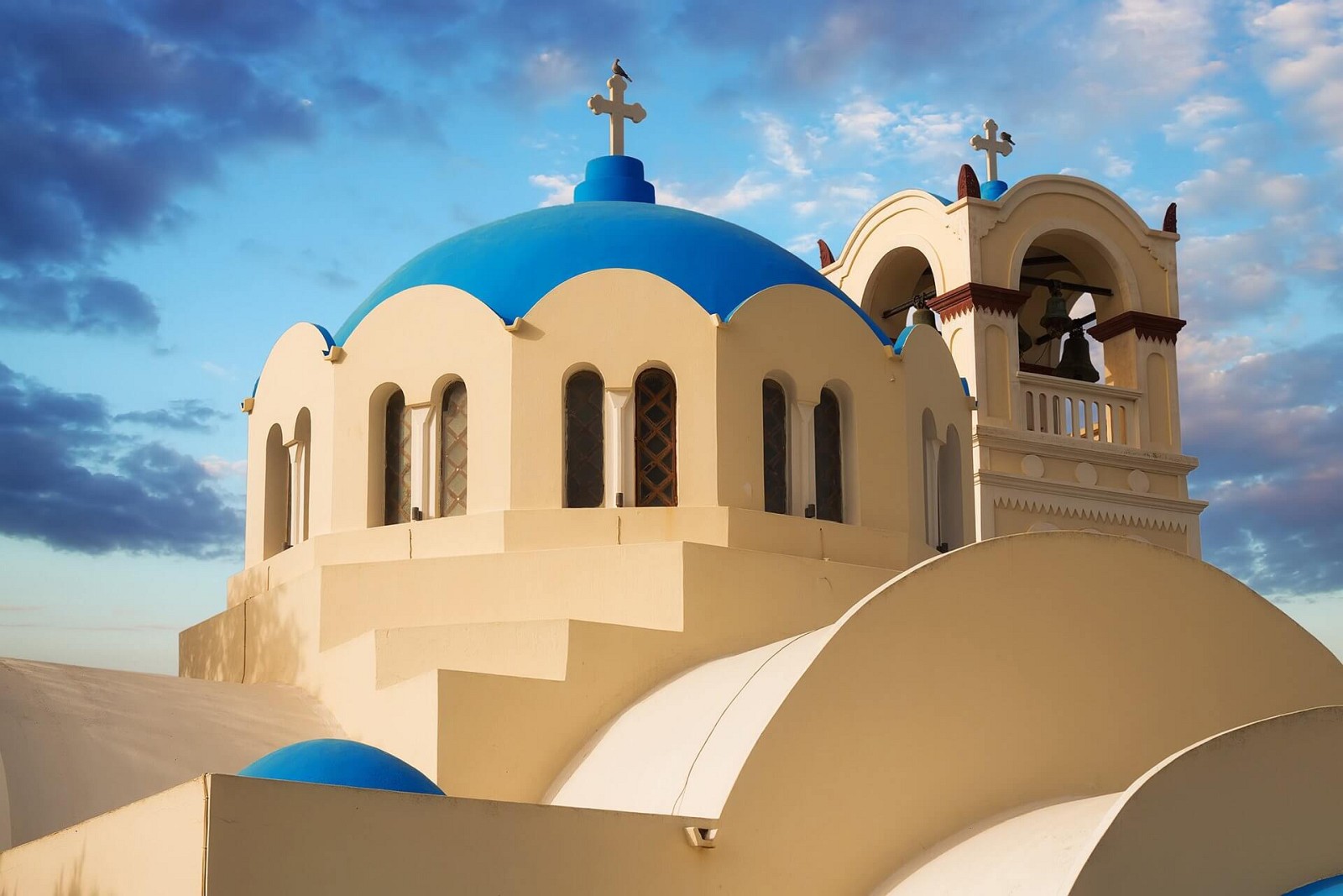 Al norte de la ciudad, la majestuosa Torre Goulas, del siglo XV, se alza imponente con su característica estructura piramidal. No faltan iglesias con sus características cúpulas azules, como la gran Panagia Mesani, en la parte baja del pueblo, y numerosas capillas diseminadas por el casco antiguo.