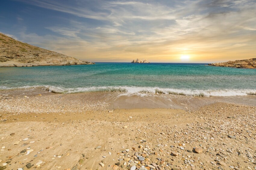Debido a su conformación morfológica, Sikinos ofrece muy pocas playas, de las cuales sólo tres son de fácil acceso. Sin embargo, el mar de la isla está en su mejor momento, con aguas cristalinas y prístinas que compensan la limitada extensión del litoral arenoso.