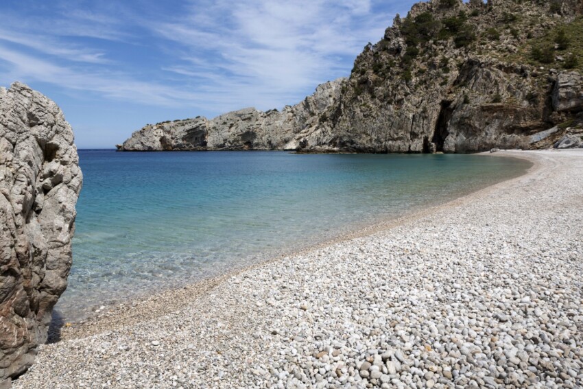 El acceso a Apella requiere una carretera panorámica que serpentea por las montañas, ofreciendo por el camino unas vistas impresionantes de la costa este de la isla. Una vez en la playa, el paisaje que se presenta es de los que se quedan grabados en la memoria: aguas cristalinas que pasan del turquesa al azul intenso, rodeadas de formaciones rocosas y pinos marítimos. La playa dispone de instalaciones organizadas con tabernas que ofrecen especialidades locales y una vista privilegiada de la bahía.