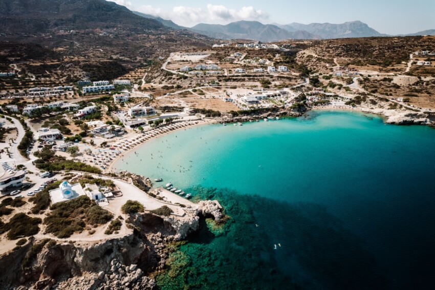 La posición geográfica de Karpathos, expuesta a los vientos Meltemi, la convierte en un destino privilegiado para los aficionados a los deportes acuáticos, sobre todo windsurfistas y kitesurfistas. Sin embargo, la isla también ofrece numerosas bahías resguardadas y calas escondidas donde refugiarse del viento y disfrutar de aguas cristalinas. La costa este tiene sobre todo playas de guijarros y guijarros, mientras que la costa sur presume de playas de arena fina y blanca.