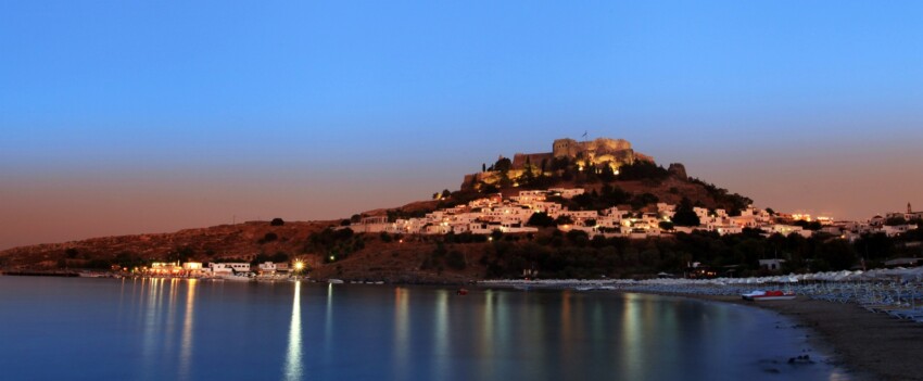 Medio día es suficiente para ver los monumentos de Lindos, pero te recomendamos que te quedes al menos una noche, porque cuando los autobuses turísticos se han ido y el sol se pone, la ciudad está en su mejor momento. Ya no tendrás que esforzarte por recorrer las calles empedradas del centro y podrás admirar el espectáculo de las mil lucecitas que se encienden para iluminar las terrazas de los tejados.