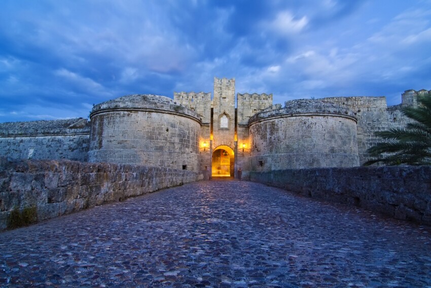 La principal atracción de la ciudad de Rodas es sin duda el Palacio de los Grandes Maestres (también llamado Palacio de los Caballeros), un magnífico edificio de dos plantas con un pórtico en la planta baja y una gran escalinata interior que data del siglo XIV.