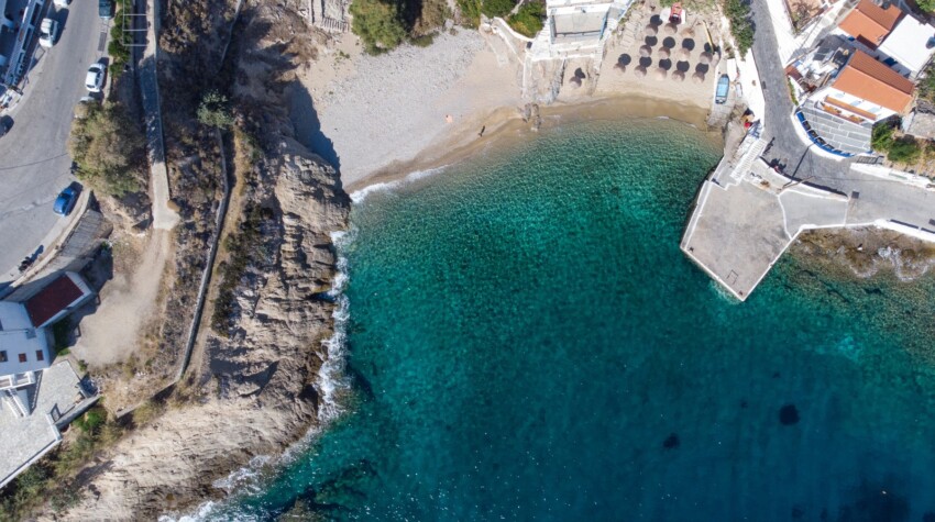 Armenistis es el balneario más desarrollado de la isla y ofrece dos playas contiguas de oscura arena volcánica, protegidas por una bahía natural que las hace ideales incluso cuando soplan los vientos del norte. La presencia de hoteles y restaurantes a lo largo del paseo marítimo ofrece servicios completos, mientras que el puerto pesquero añade autenticidad al paisaje. Las aguas poco profundas la hacen perfecta para familias con niños.