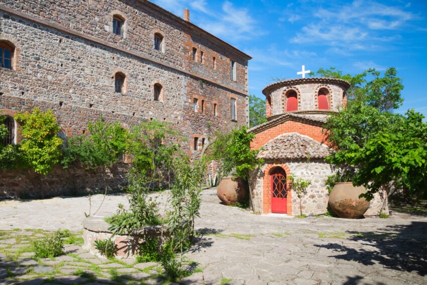 Los bosques petrificados de Sigri, reconocidos por la UNESCO como Geoparque Mundial, conservan troncos fosilizados de hace 20 millones de años en un paisaje lunar único, mientras que el Monasterio de Limonos, del siglo XVI, alberga raros manuscritos bizantinos y ofrece impresionantes vistas de la costa occidental. Los pueblos del interior, como Agiassos, mantienen tradiciones artesanales centenarias, famosas por el trabajo de la madera y la producción de iconos bizantinos pintados a mano.