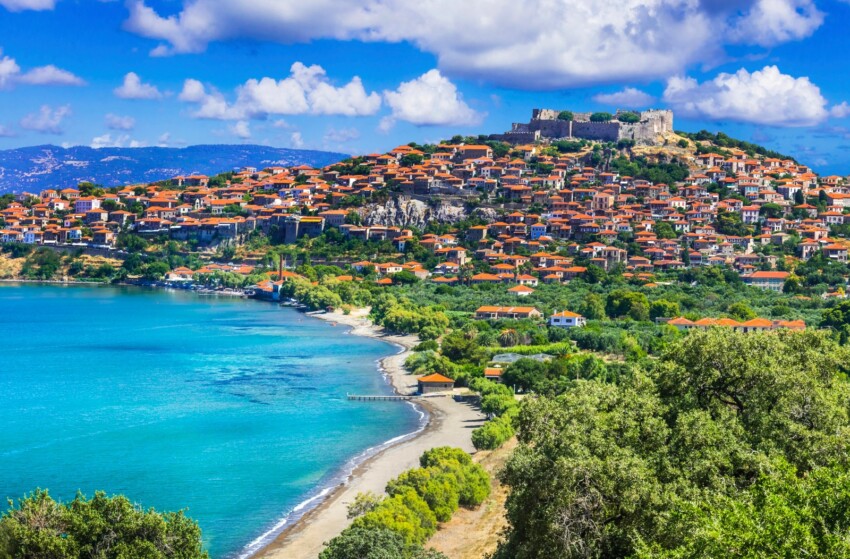 La bahía de Molyvos ofrece una de las vistas más fotogénicas de la isla, con el castillo bizantino reflejado en las aguas cristalinas, mientras que la colorida playa de guijarros se extiende más de un kilómetro a los pies del pueblo medieval mejor conservado de las islas griegas. Las fuentes termales naturales de Eftalou, a 20 minutos a pie de Molyvos, ofrecen una experiencia única en la que las aguas termales se mezclan con el agua del mar para crear temperaturas perfectas para un baño relajante incluso en los meses de invierno.