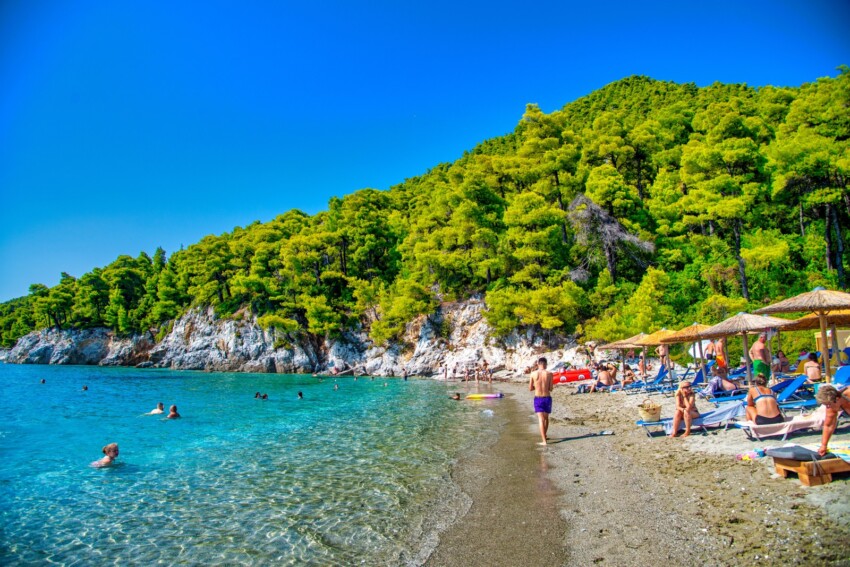 Las playas de Alonissos se distinguen por su belleza natural salvaje y sus aguas excepcionalmente claras, hasta el punto de ser elegidas como hábitat de la rara foca monje del Mediterráneo. La mayoría de las costas se caracterizan por suaves guijarros blancos y arena gruesa, enmarcadas por prístinos pinares y acantilados que crean vistas impresionantes.