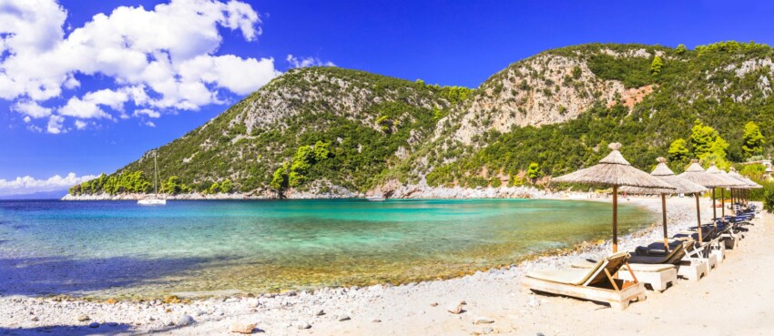 Muchos consideran que Milia es la playa más hermosa de Skopelos y no es difícil ver por qué. Esta magnífica bahía se extiende más de 800 metros a lo largo de la costa oeste, lo que la convierte en la playa más larga de la isla. Formada por arena fina alternada con pequeños guijarros plateados, Milia ofrece un equilibrio perfecto entre comodidad y belleza natural.