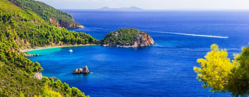 Skopelos, conocida mundialmente como la isla de Mamma Mia!, es un verdadero paraíso para los amantes del mar cristalino y las playas vírgenes. Esta perla de las Espóradas te cautivará con sus playas de guijarros blancos enmarcadas por bosques de pinos que parecen sumergirse en el azul del mar Egeo.