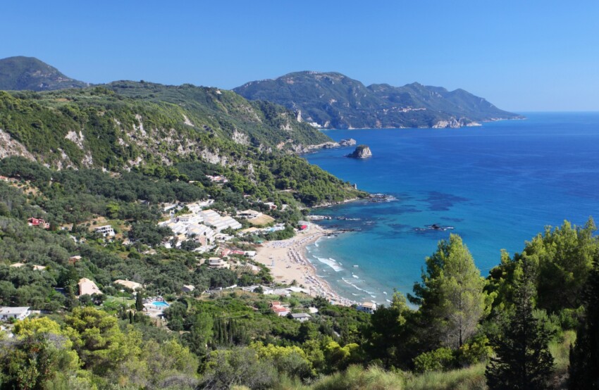 ¡La costa oeste de Corfú no da tregua a los amantes del hermoso mar! Tras dejar la zona de Paleokastritsa al norte, uno se encuentra con una serie de hermosas playas al sur, incluida una de fama literaria.