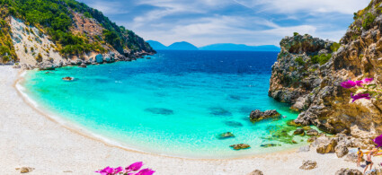 Las playas de Meganisi representan uno de los tesoros mejor guardados de las islas Jónicas, donde la ausencia de turismo de masas ha preservado calas salvajes y aguas cristalinas. La isla se caracteriza por la ausencia total de playas de arena: todas las orillas arenosas están formadas por guijarros blancos y rocas lisas que dan al mar esos tonos turquesa y verde esmeralda que hacen de Meganisi un pequeño paraíso para los amantes del mar virgen.