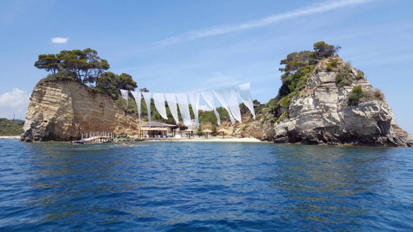 A pocos minutos a pie de Laganas está la pequeña isla Cameo, unida a tierra firme por un característico embarcadero de madera. Esta diminuta isla de guijarros blancos está considerada el segundo lugar más fotografiado de Zante, después de la famosa Playa del Naufragio, y ofrece un paisaje de postal y un ambiente más íntimo que la cercana playa principal.
