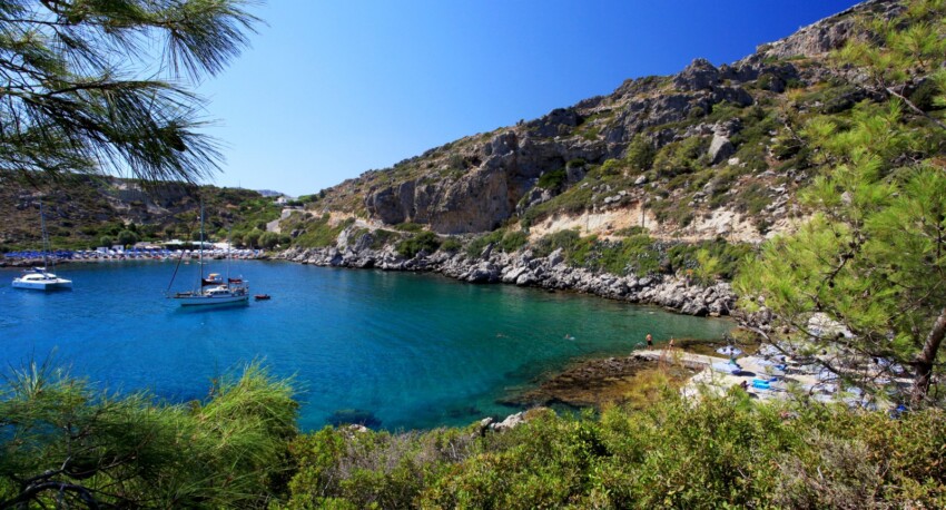 A soli 4 km dall’affollata spiaggia di Faliraki si trova un angolo di paradiso dall’atmosfera completamente diversa: la Baia di Anthony Quinn così chiamata perché il famoso attore americano se ne innamorò perdutamente durante le riprese del film “I cannoni di Navarone”.